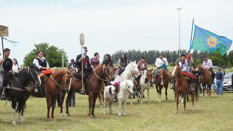 La cabalgata se retomó el domingo, completando la distancia desde El Moro a Lobería, y en la Rotonda del Gaucho los caballistas fueron recibidos con recitados gauchos y el espectáculo del Grupo Coreográfico Lamequén.
